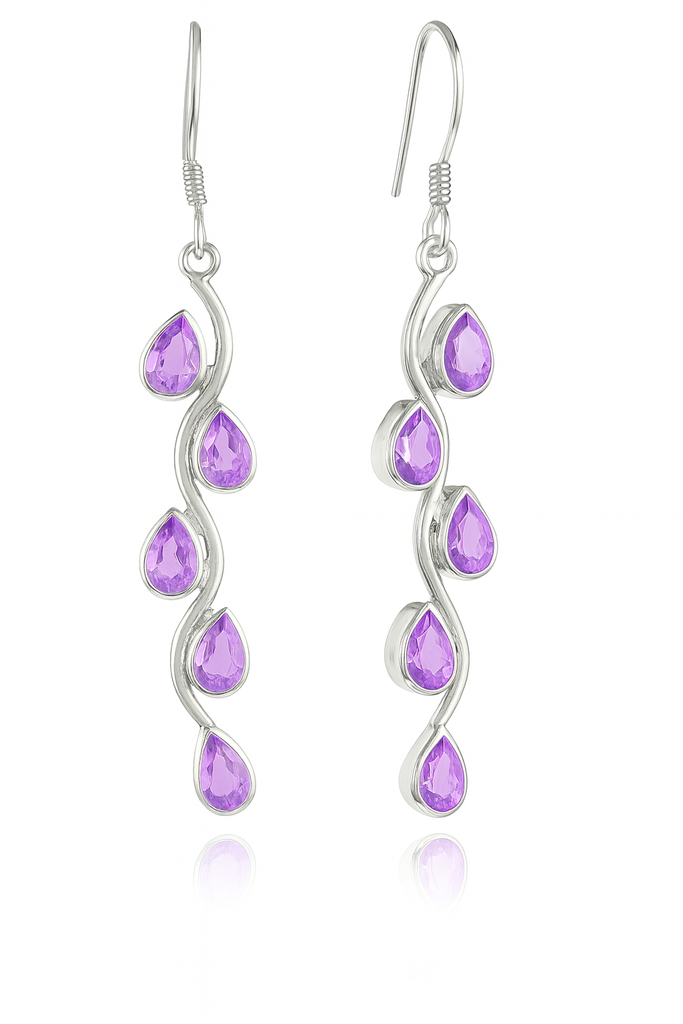 Vertical Stone Leaf Drop Earrings Amethyst