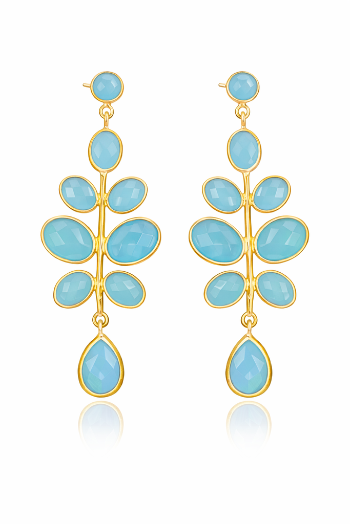 Gold Plated Budding Branch Earrings Blue Chalcedony