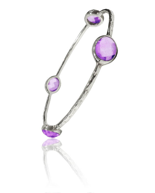 Gold Plated Four Oval Stone Jaipuri Bangle Amethyst