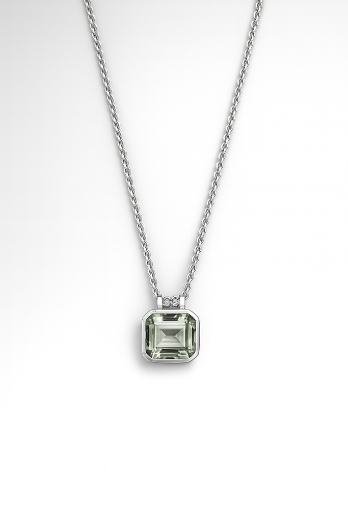 Glacial Rectangular Gemstone Necklace - Green Amethyst