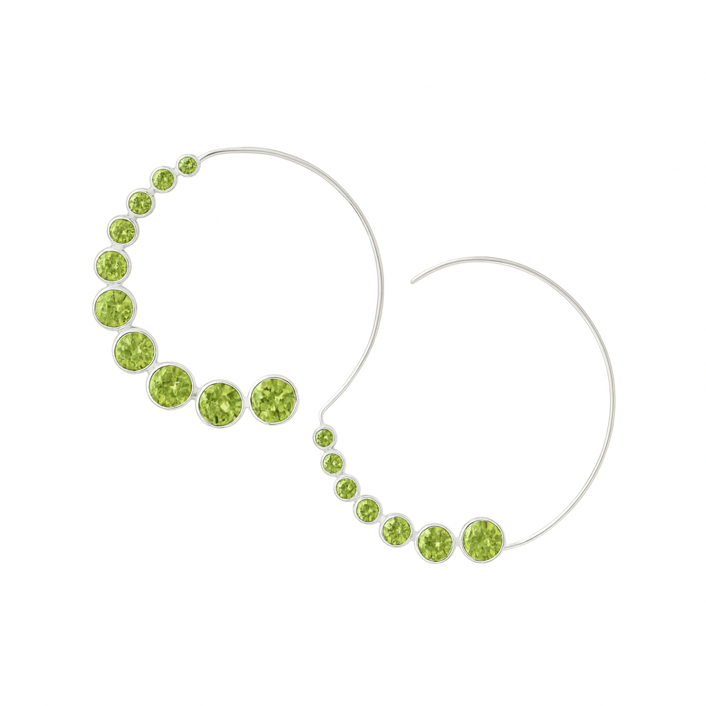 Faceted peridot stones sparkle with a fresh, vibrant energy, swirling gracefully around each earring in a modern interpretation of the traditional Indian hoop. This design embodies our signature fusion style—blending timeless heritage with a contemporary twist.