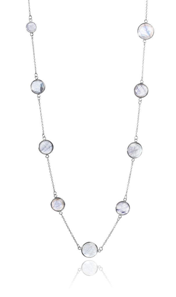 Faceted 17 Stone Capri Long Necklace White Moonstone