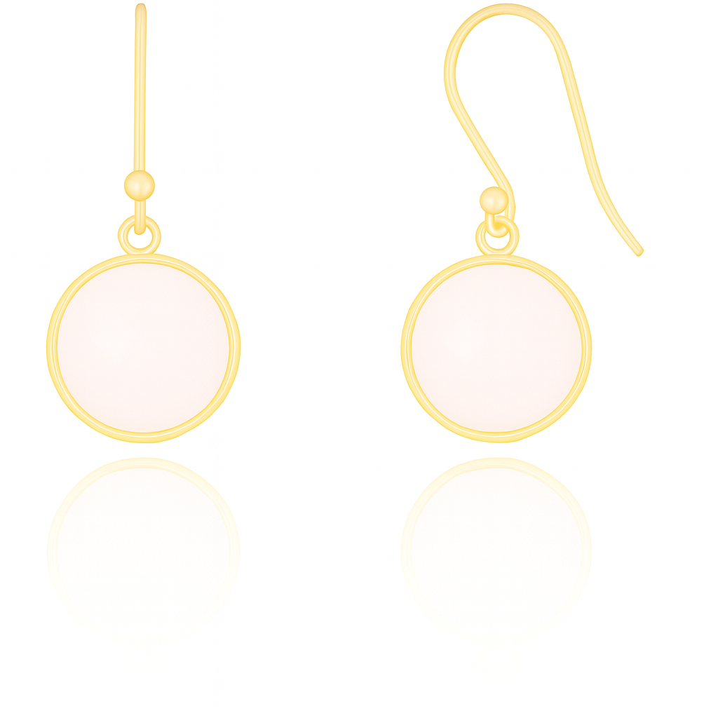 Gold Plated Medium Hanging Puntino Earrings Rose Quartz