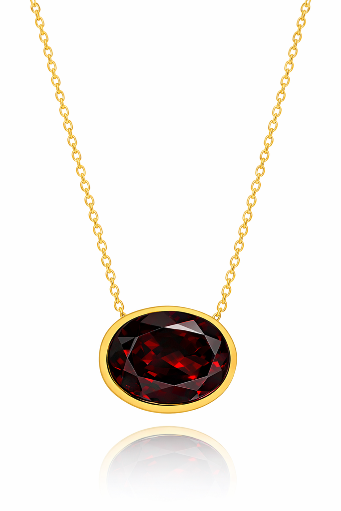 Gold Plated Floating Oval Pietra Necklace Garnet