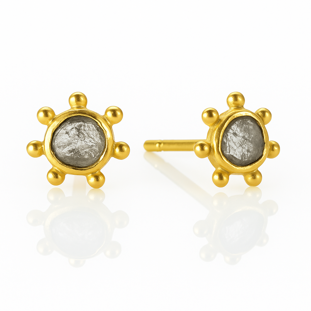 Inspired by the blossoming gardens of India, the Jaipur Blossom Studs celebrate nature’s delicate beauty and the soul of traditional craftsmanship. At the center of each floral design rests a raw diamond chip—symbolizing clarity, resilience, and strength.