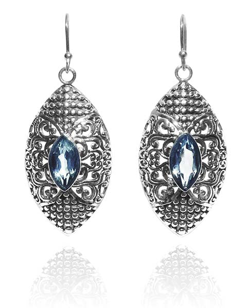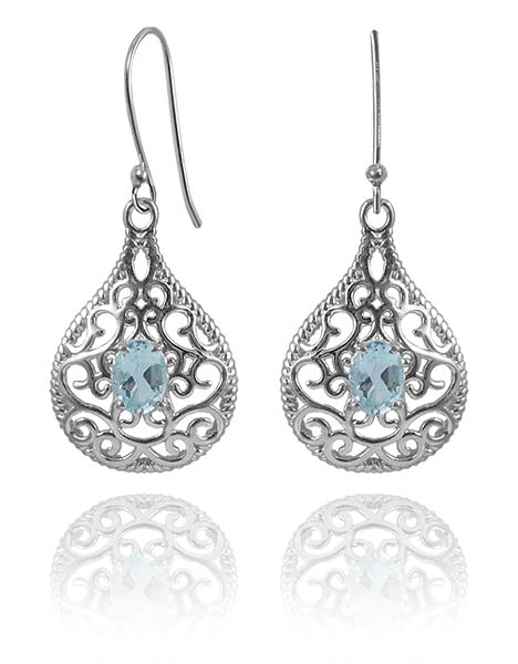 Arabesque Teardrop Earrings with Stone Blue Topaz