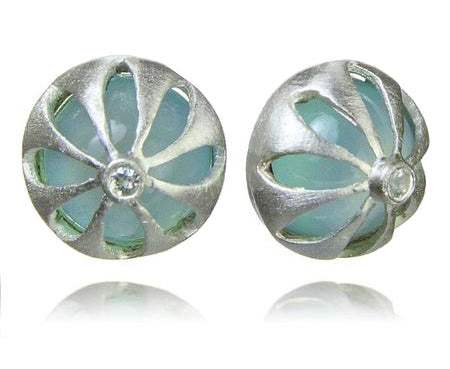 Arabesque Flower Cut Out Studs Aqua Chalcedony