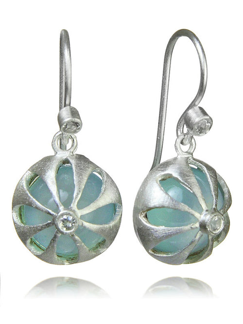 Arabesque Stone Lantern Earrings Aqua Chalcedony