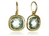 18K Gold Plated Framed Rounded Square Classic Earrings Green Amethyst
