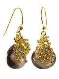 18K Gold Plated Small Burst Earrings Smokey Quartz