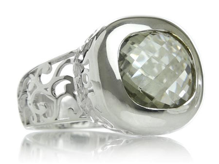 Arabesque Square Filigree Cocktail Ring Green Amethyst