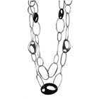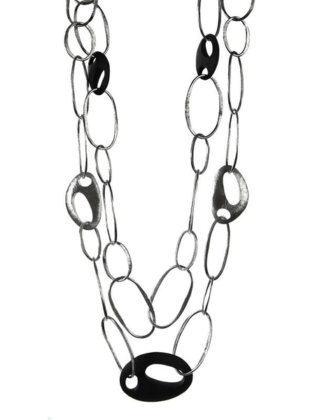 Art Deco Oval Silver and Wood Double Stranded Necklace