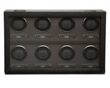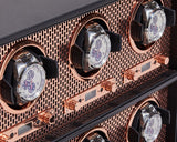 Copper and Powder-coated laser cut perforated steel melded with clean, sleek lines. AXIS drives a modern, bold look for safekeeping your timepieces. Trusted patented technology of counting rotations of the axis of your watch guarantees precise turns per day. Features custom metal plating, locking glass cover, backlit LCD display, powder coated or copper finished hardware and 8 winding modules.