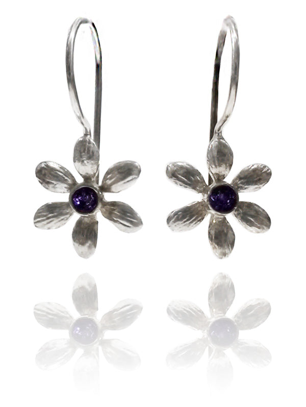 These delicate textured flowers set with a small faceted stone are from our Israel collection.