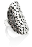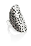 Feel like a warrior in this Balinese Shield Ring. The large ring covers your fingers like a shield protecting a soldier. A perfect statement piece, this ring is sure to turn heads