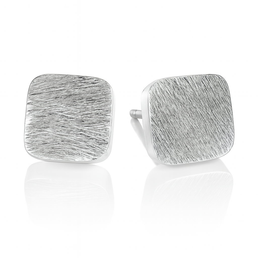 Inspired by the clean lines and modernist aesthetics of Berlin’s Bauhaus architecture, these brushed sterling silver studs embody minimalist elegance. The subtle texture and geometric shape reflect the raw yet refined beauty of the city's architectural heritage, making them a timeless addition to any collection. Perfect for those who appreciate understated sophistication with an edge of urban artistry.