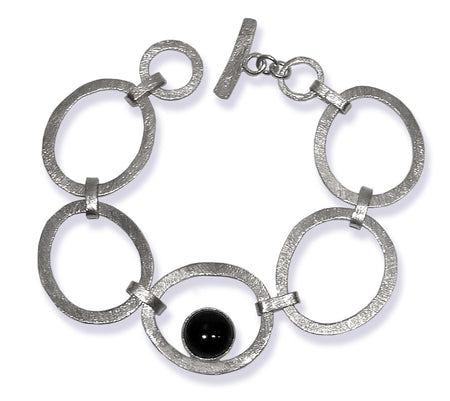 Brushed Open Circle with Stone Bracelet Black Onyx
