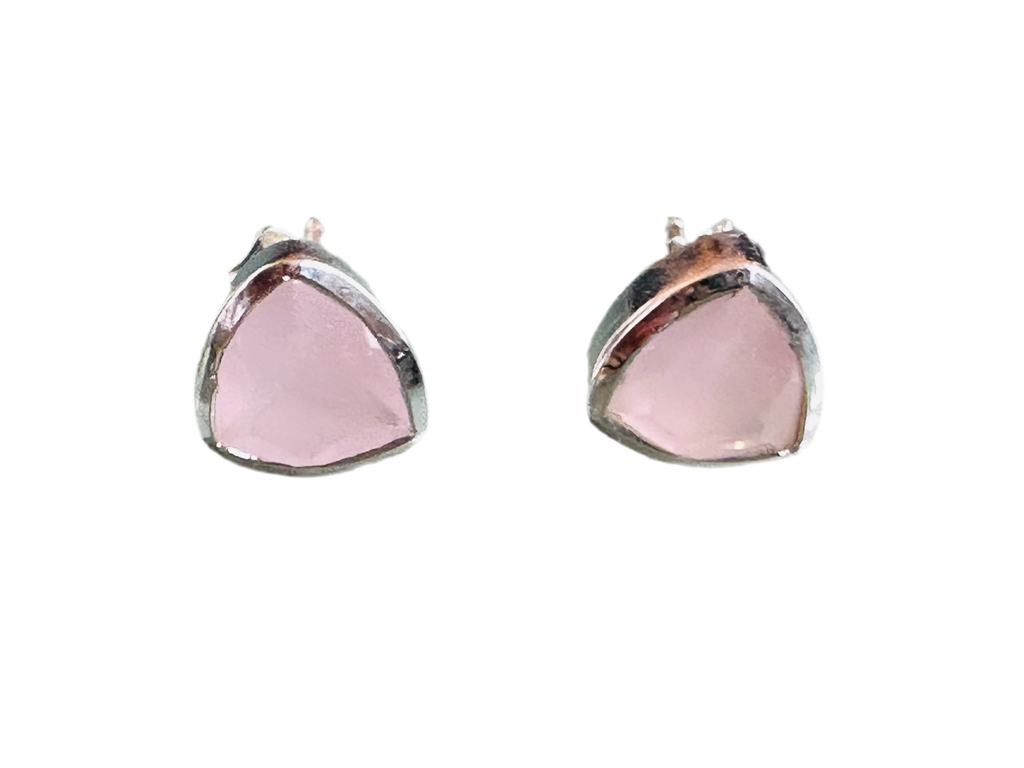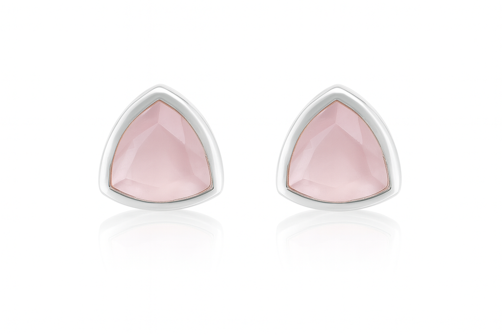 Capri Encased Triangolo Studs Rose Quartz