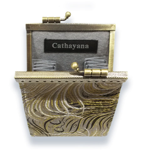 Cathayana Card Holder Grey/ Black, Gold Peacock with RFID