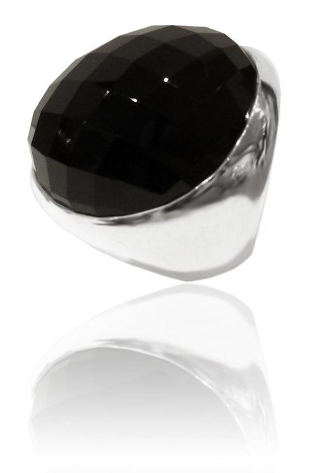 Classic Capri Circle Stone Cocktail Ring Black Onyx 7.5