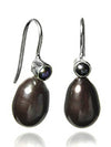 Double Pearl Drop Hanging Earrings Grey Pearl