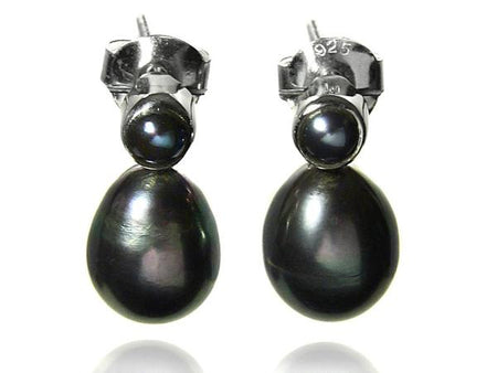 Double Pearl Drop Studs Grey Pearl