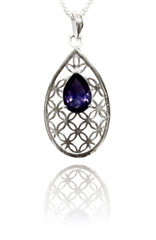 Flower of Life Teardrop Pendant with Iolite