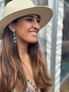 Gold Plated Four Geometric Drop Earring Aqua Chalcedony