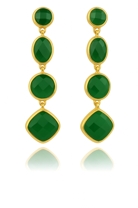 Gold Plated Four Geometric Drop Earring Green Onyx