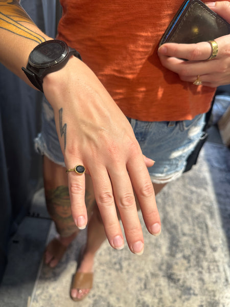 Gold Plated Oval Stackable Jaipuri Ring Black Onyx