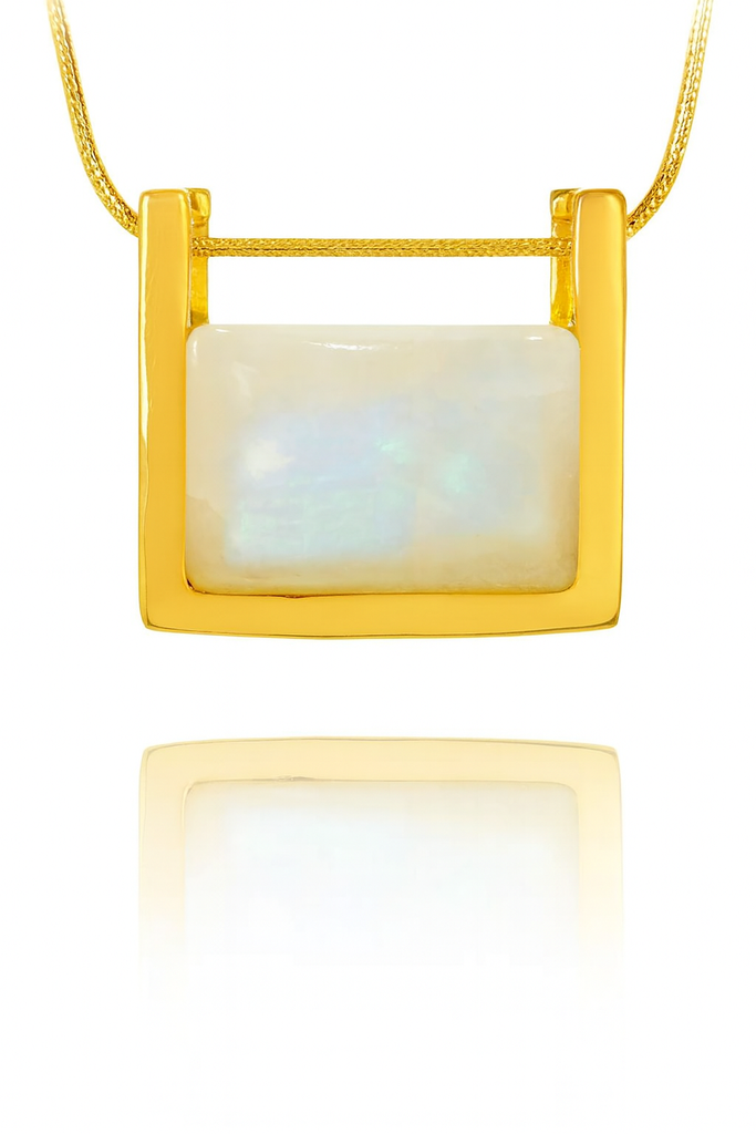 Gold Plated Rectangular Italian Stone Pendant White Moonstone