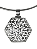 Inspired by Islamic architecture this hexagonal pendant is a statement piece. During Mousumi's travels through Turkey, Morroco, Northern India and Egypt, she fell in love with Islamic architecture and art found in the mosques, and buildings.