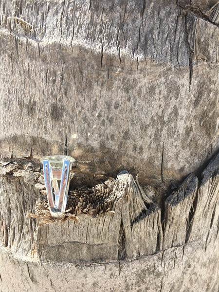This cocktail ring is inspired by the glam of the Italian island of Capri. The beautiful sterling silver band gracefully presents the faceted stone. This is a perfect ring to wear casually or dressy!