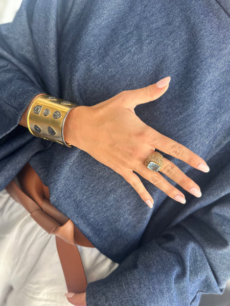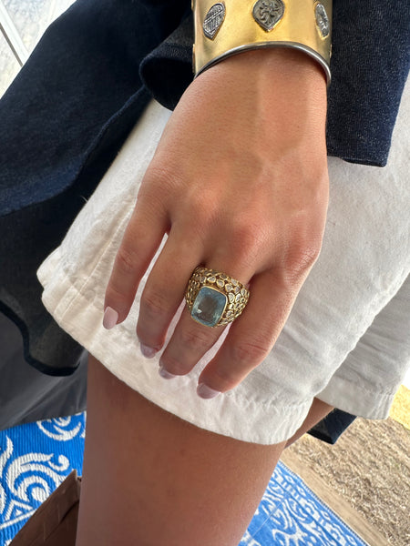 Jaipuri Sliced Diamond Dome with Rectangular Aqumarine