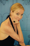 Large Capri Flat Square Cocktail Ring Golden Rutile Quartz