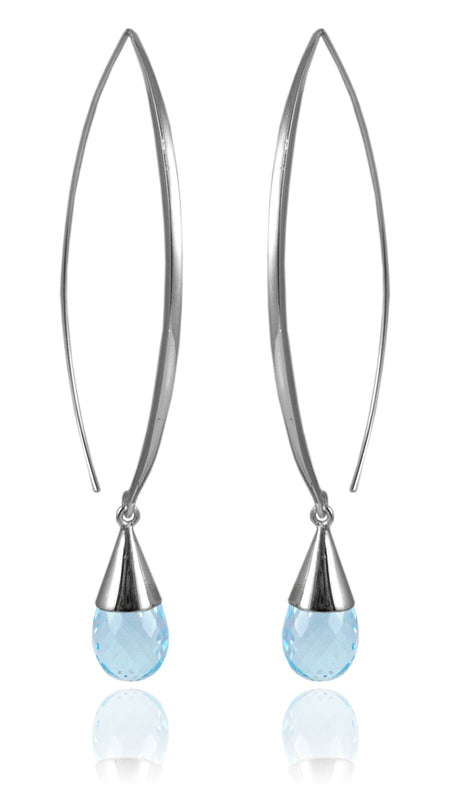 Long Curved Gemstone Drop Earrings Blue Topaz