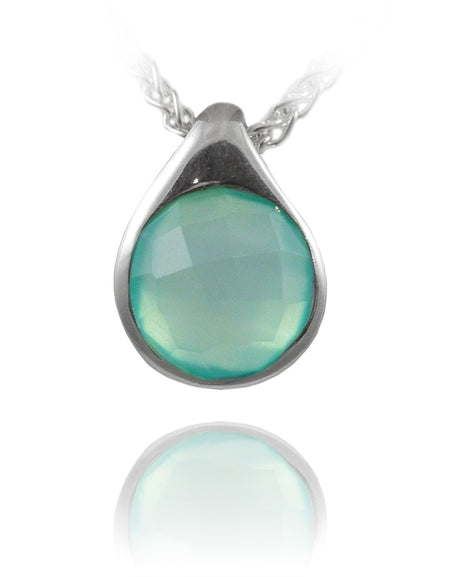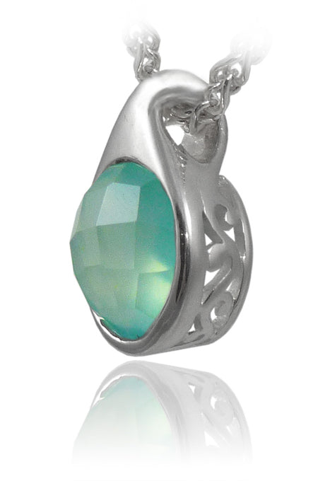 Modern Side Arabesque Cutout Stone Pendant Aqua Chalcedony