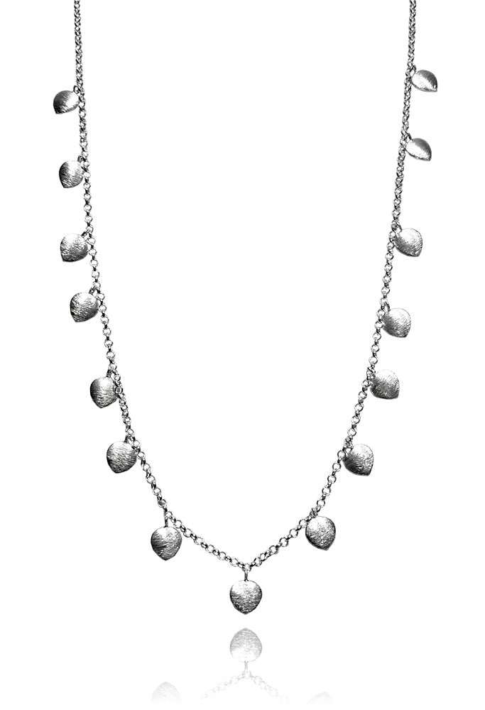 A variation on the Raqs Sharqui Necklace, this necklace is a single chain with 15 small brushed petals. It is classy in its simplicity, bringing just the right amout of flair and shimmer to any outfit. From out Egypt collection.