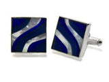 These cufflinks are handmade in America. Made with a combination of mother-of-pearl and lapiz stones.