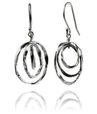 Three hammered oval circles create these dainty earrings. When worn, the circles move inside creating a sphere affect.