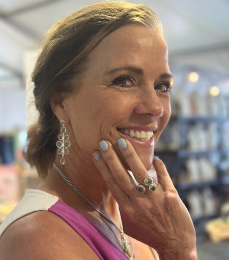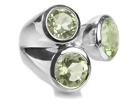 Three Stone Jaipuri Non-Connect Ring Green Amethyst