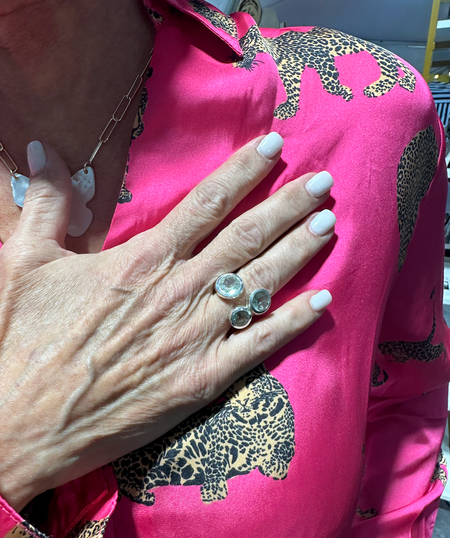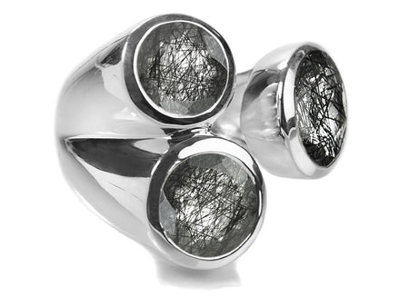 Three Stone Jaipuri Non-Connect Ring Black Rutile Quartz