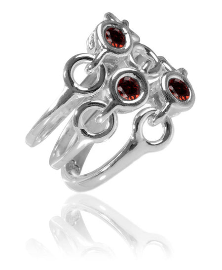 Tres Stacked Gaudi Ring Garnet